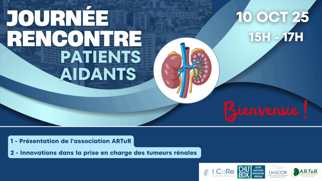 A special day dedicated to kidney cancer patients and their caregivers. This event is organised in collaboration with the patient association ARTuR, medical and research teams, the UroCCR Network and I.CaRe Bordeaux.